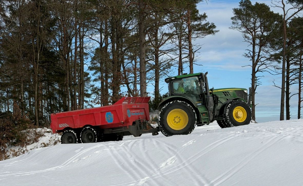 Den siste tiden har det vært en kald periode, og det er blitt en del tele i bakken. Vi har ventet litt på dette, og nå har vi fått muligheten til å transportere en del masser inn til det nye hullet hvor de mellomlagres. Massene som nå fraktes inn skal brukes til å lage veien mellom greenen på det nye hullet og opp til neste utslag.